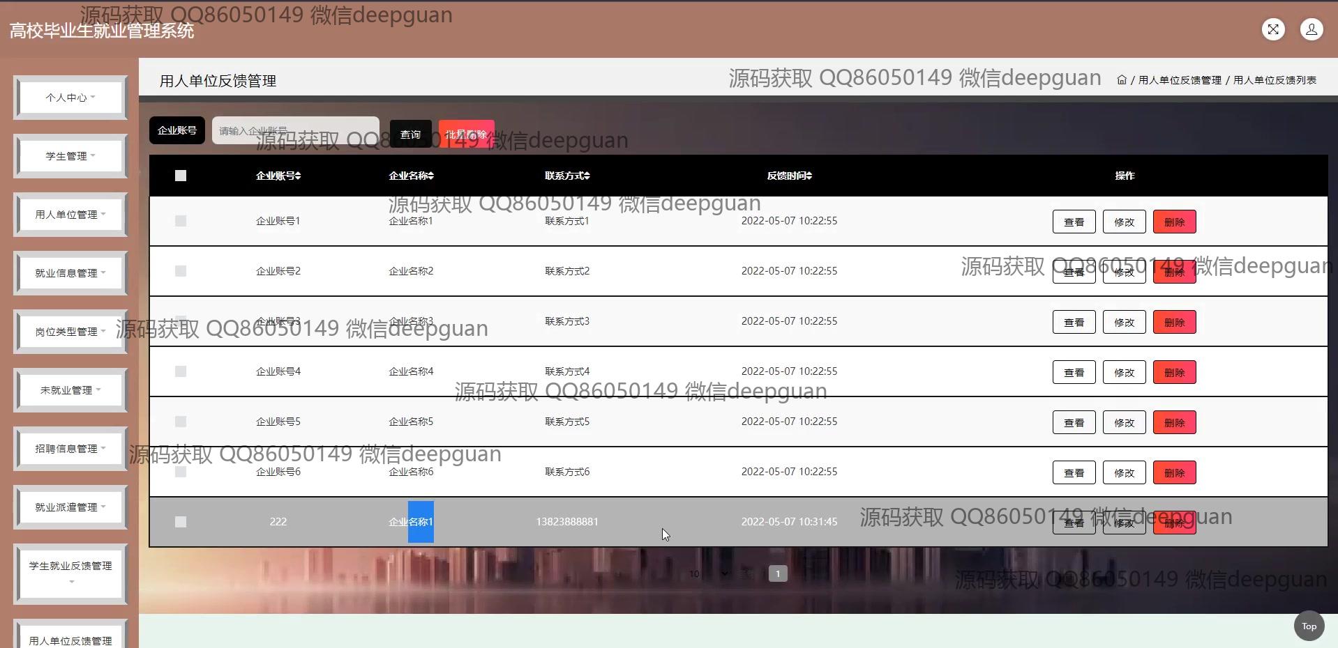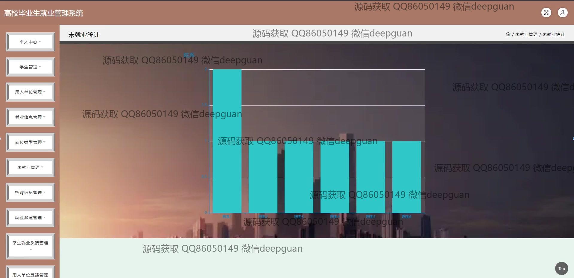 4 | 高校毕业生就业管理系统:角色分为管理员、学生、用人单位;功能包括学生管理、用人单位管理、就业信息管理、招聘信息管理、就业派遣管理和反馈管理。 --计算机毕业设计源码;毕设源码;java毕业设计源码