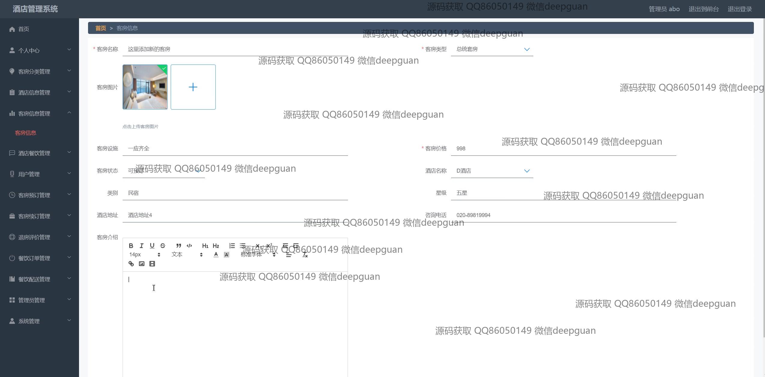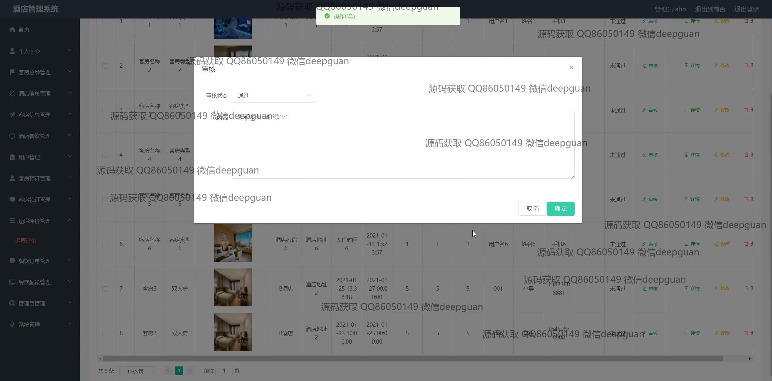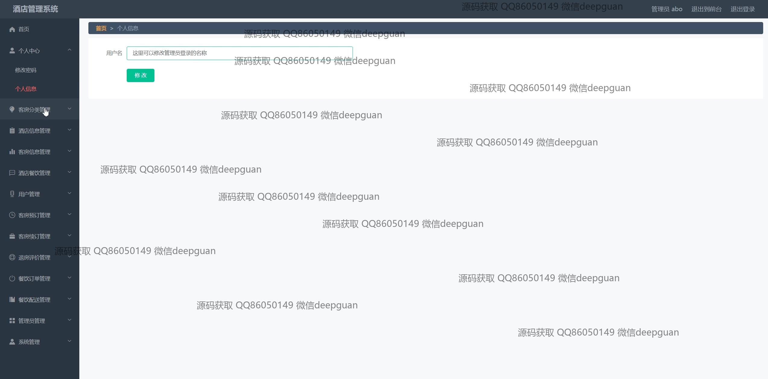 4 | vue酒店管理系统:角色分为管理员、用户;功能包括客房预订管理、餐饮订单管理、酒店信息展示、用户注册登录,以及评价管理与信息收藏功能。 --计算机毕业设计源码;毕设源码;java毕业设计源码