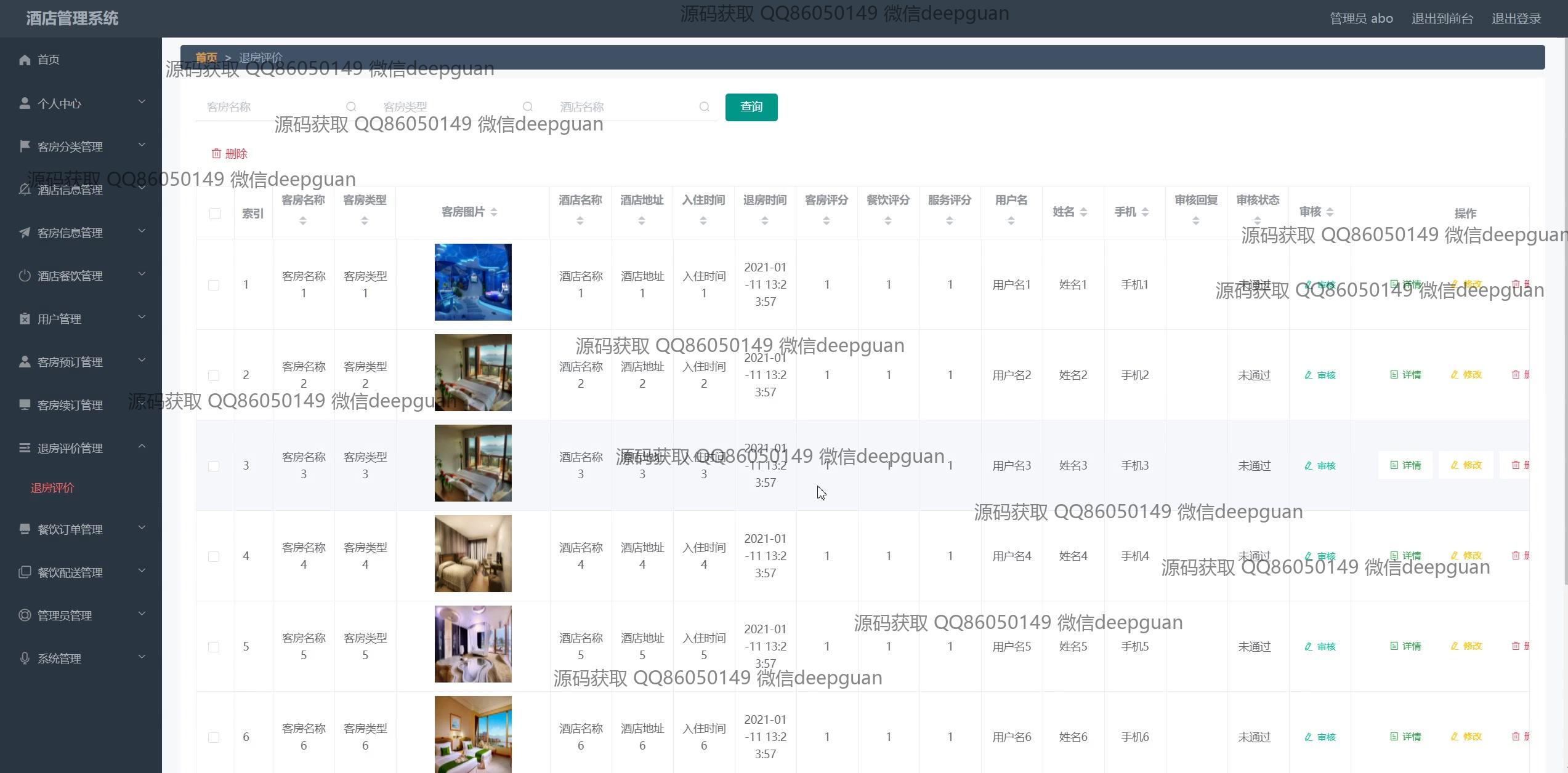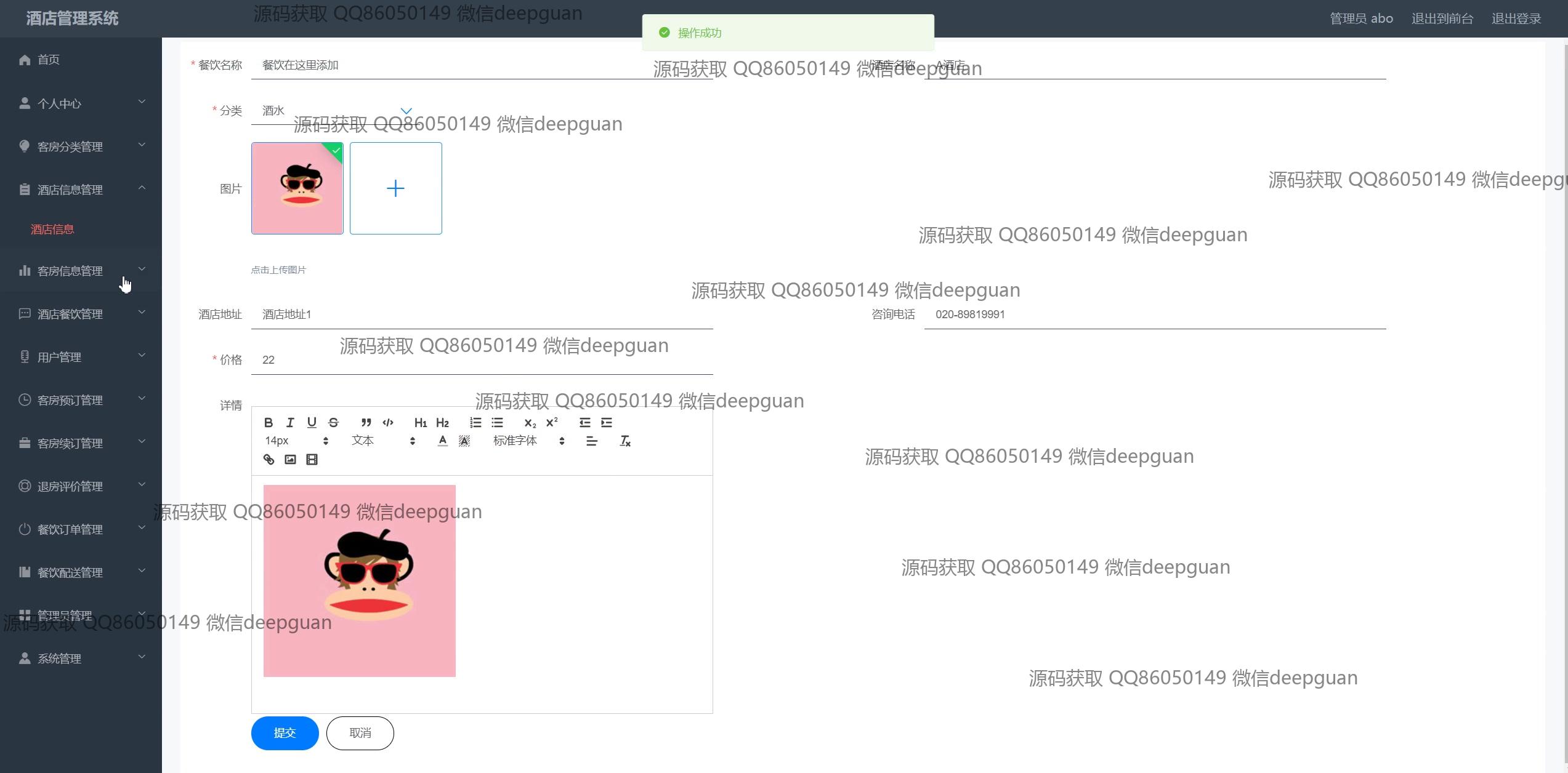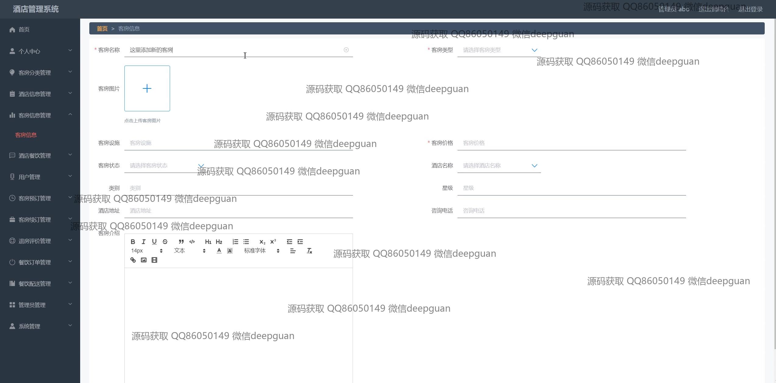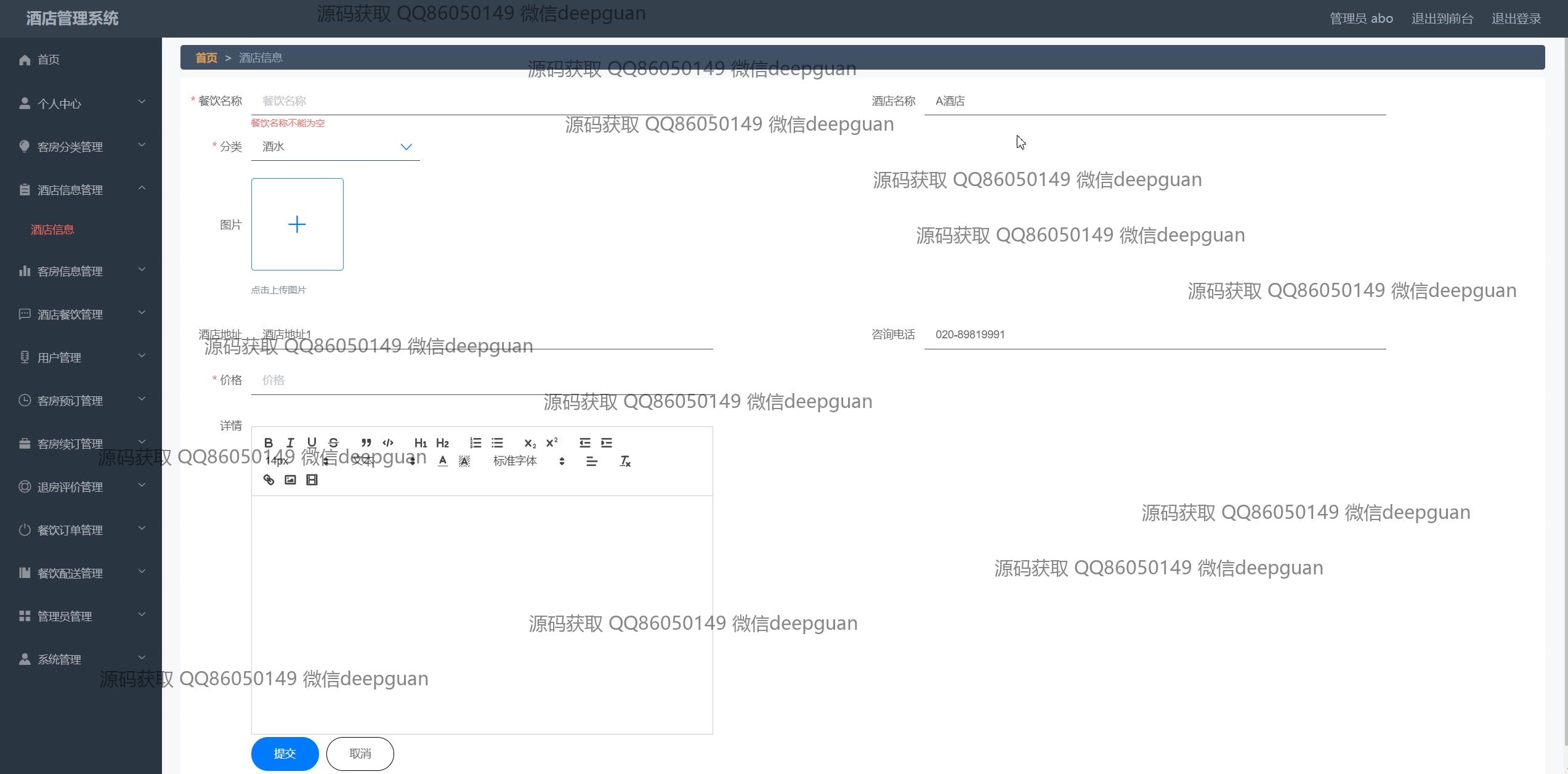 4 | vue酒店管理系统:角色分为管理员、用户;功能包括客房预订管理、餐饮订单管理、酒店信息展示、用户注册登录,以及评价管理与信息收藏功能。 --计算机毕业设计源码;毕设源码;java毕业设计源码