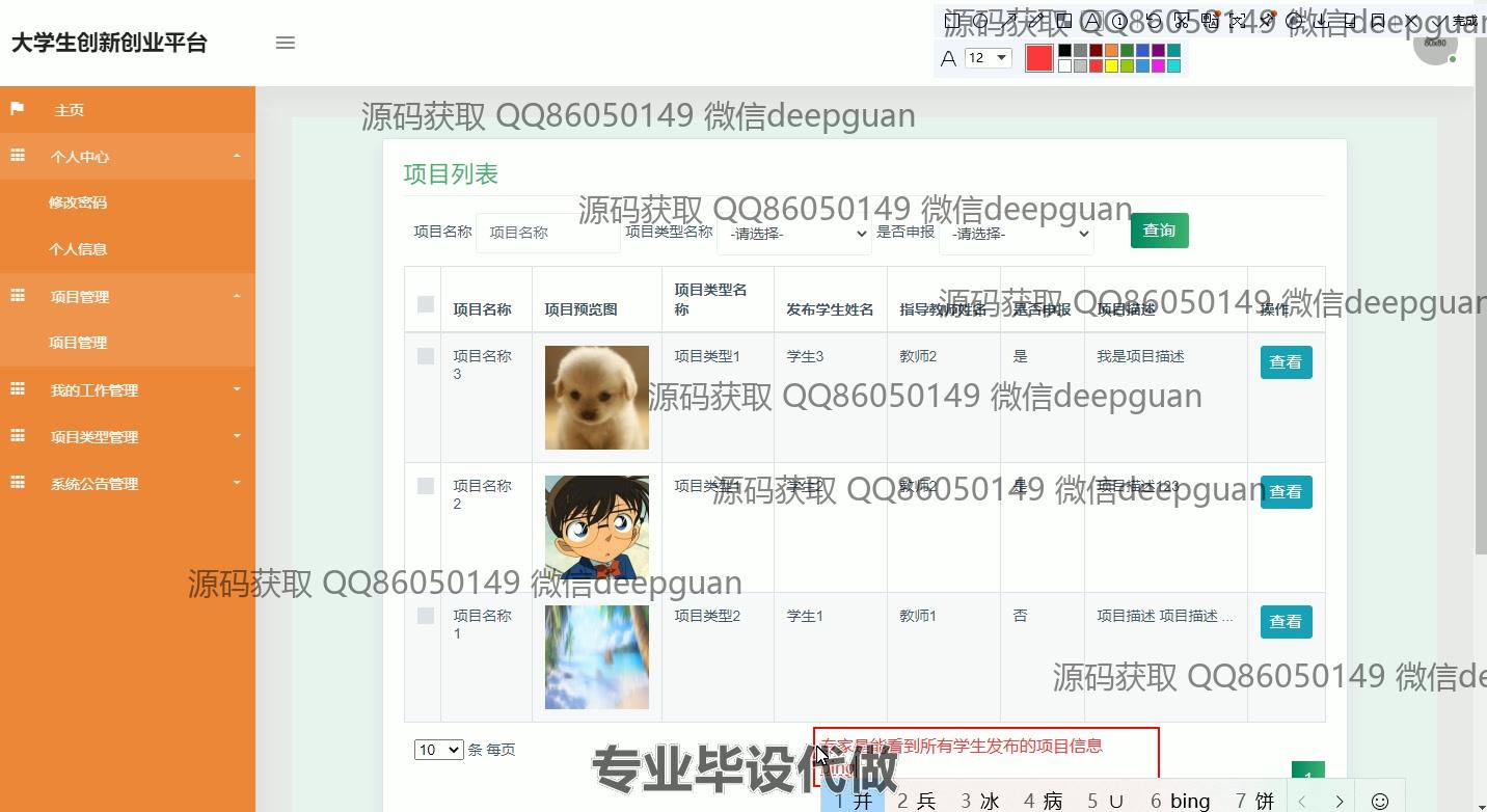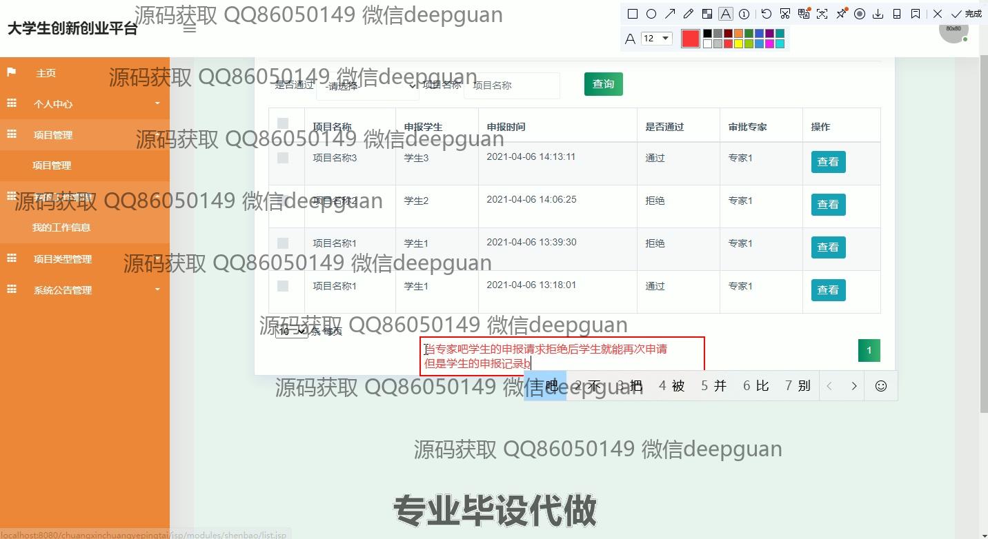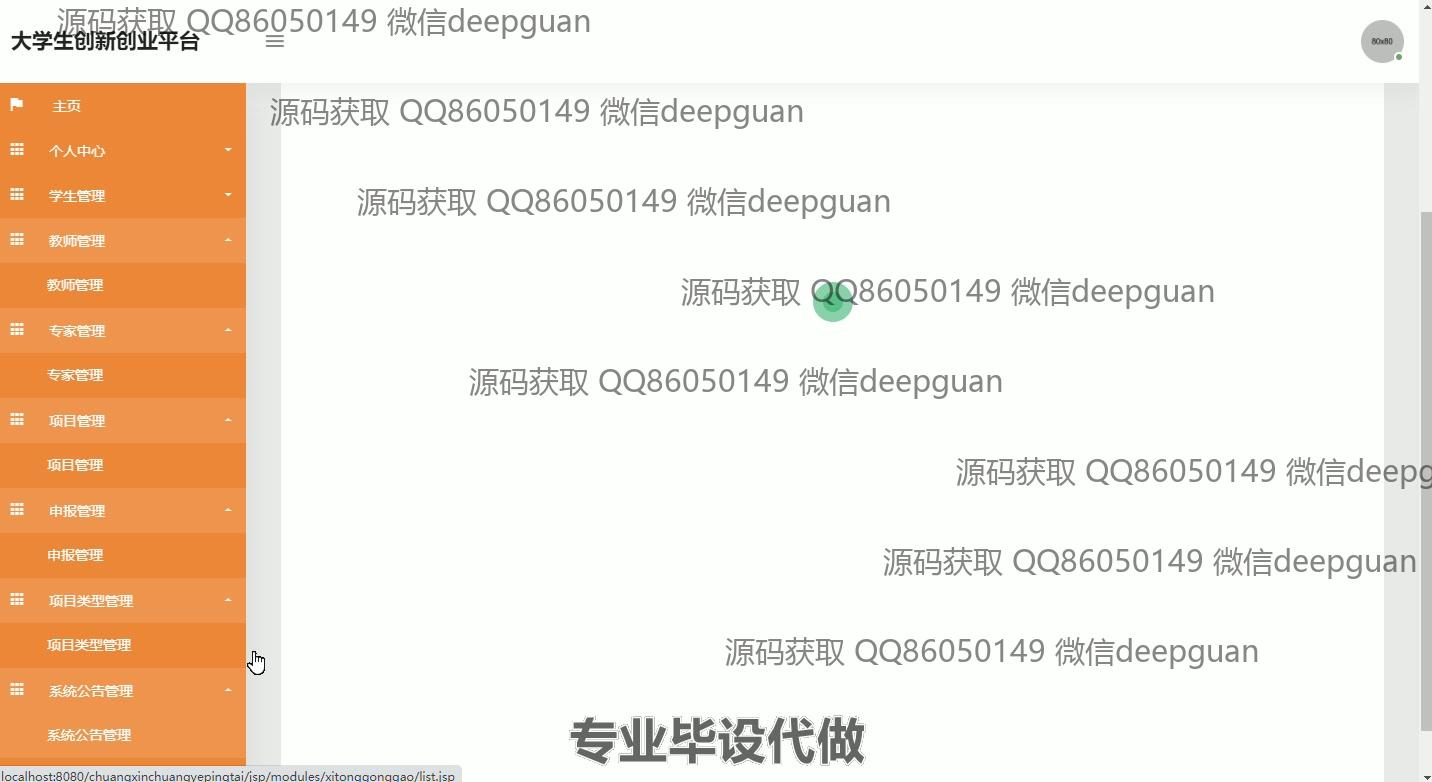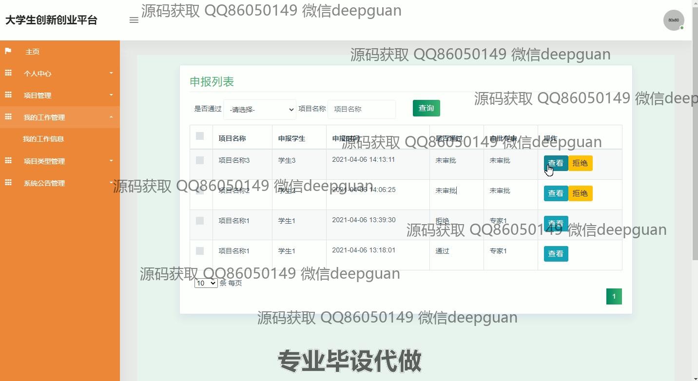 4 | 大学生创新创业平台:角色包括管理员、专家、教师和学生;提供项目管理、用户信息管理、密码修改、项目申请审批、公告发布等功能。界面简洁易用,提升管理效率。 --计算机毕业设计源码;毕设源码;java毕业设计源码