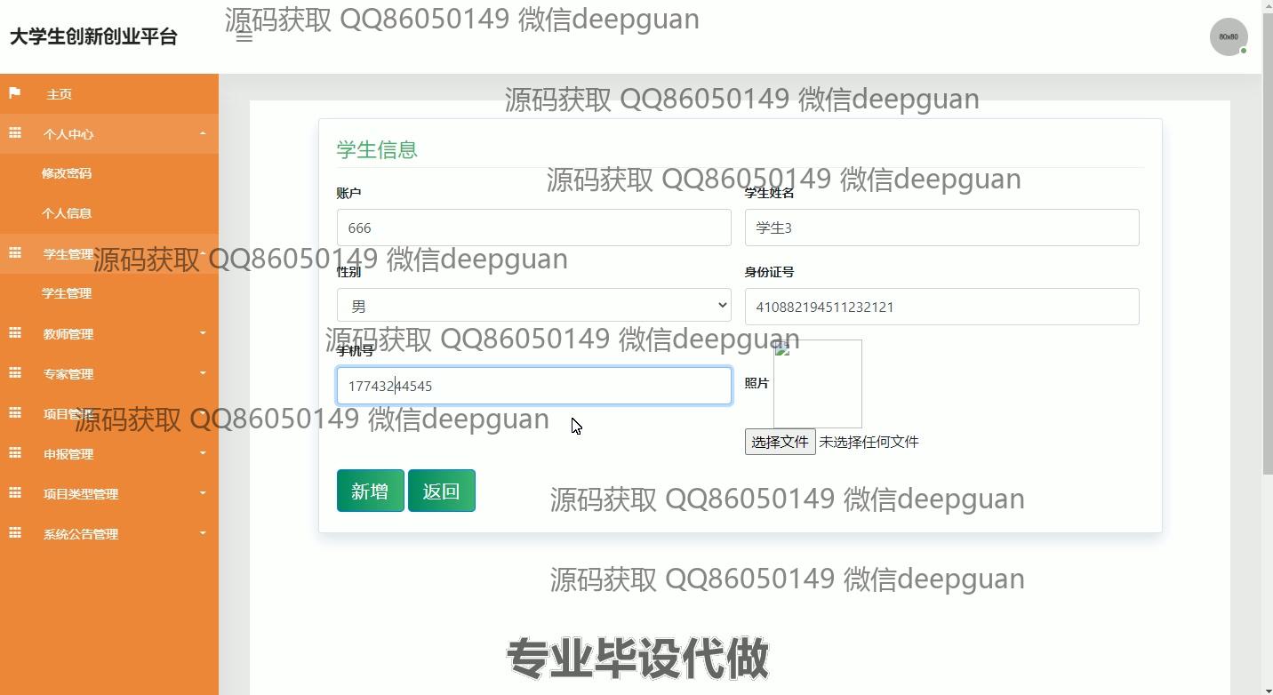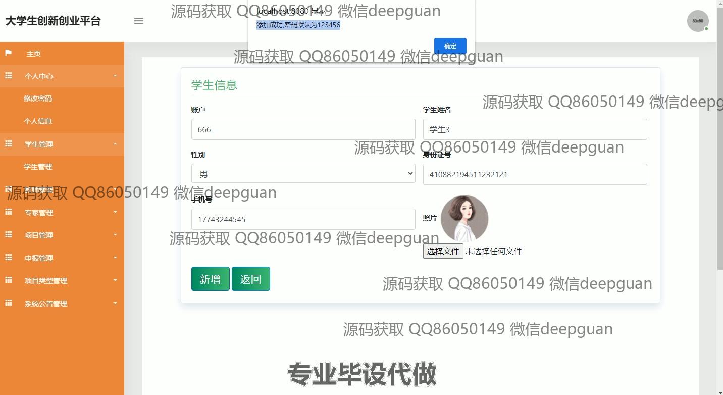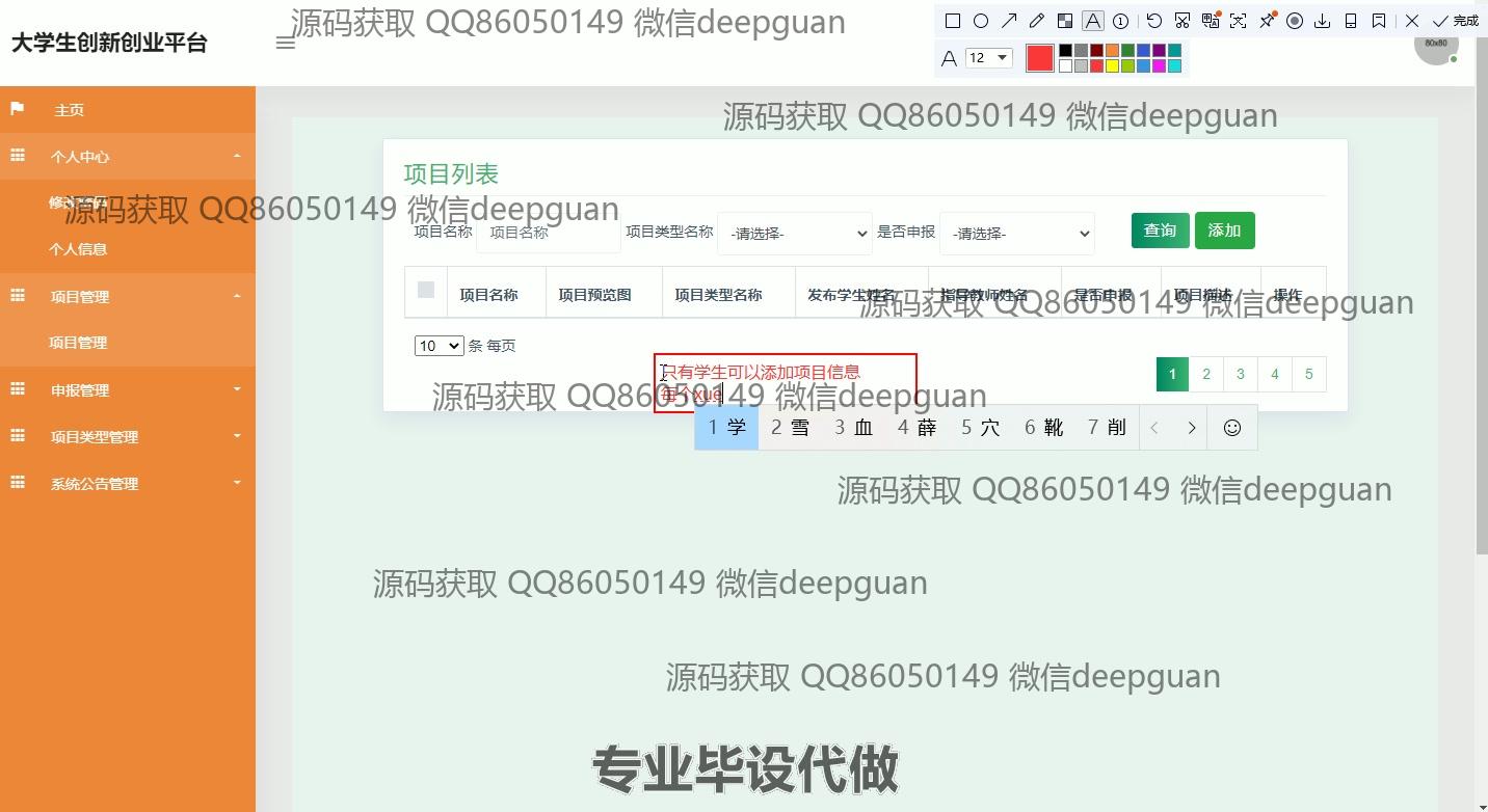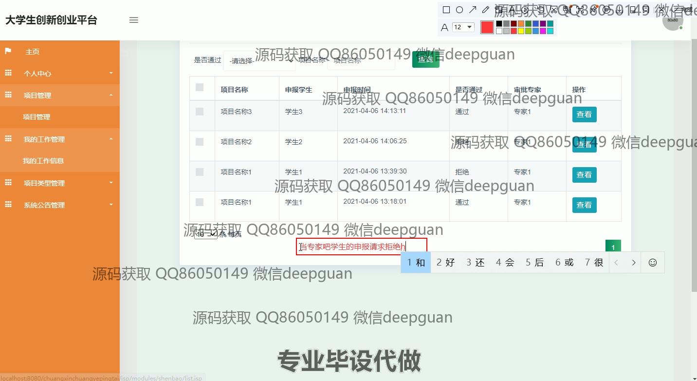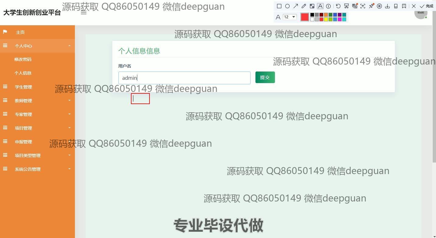 4 | 大学生创新创业平台:角色包括管理员、专家、教师和学生;提供项目管理、用户信息管理、密码修改、项目申请审批、公告发布等功能。界面简洁易用,提升管理效率。 --计算机毕业设计源码;毕设源码;java毕业设计源码