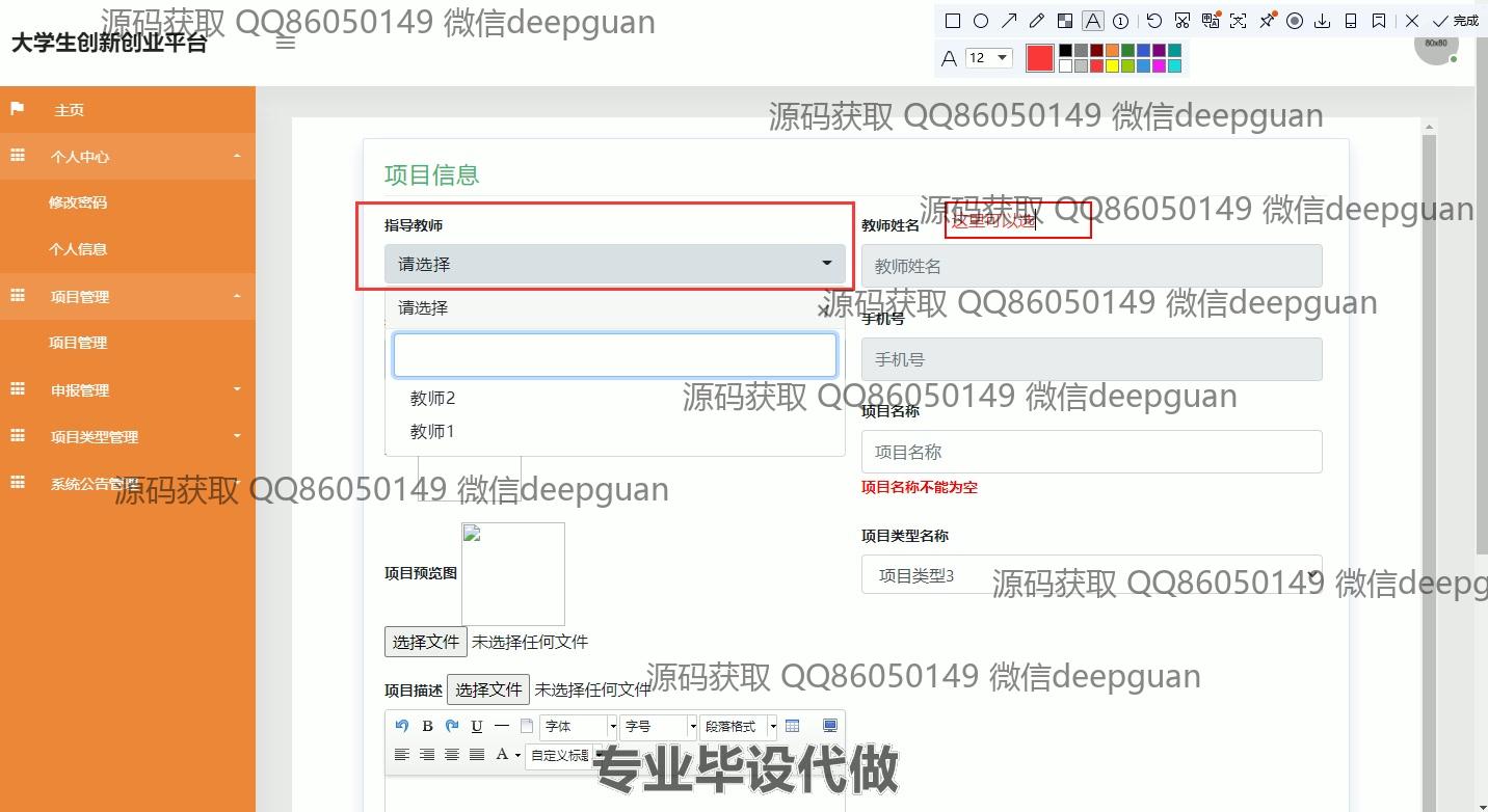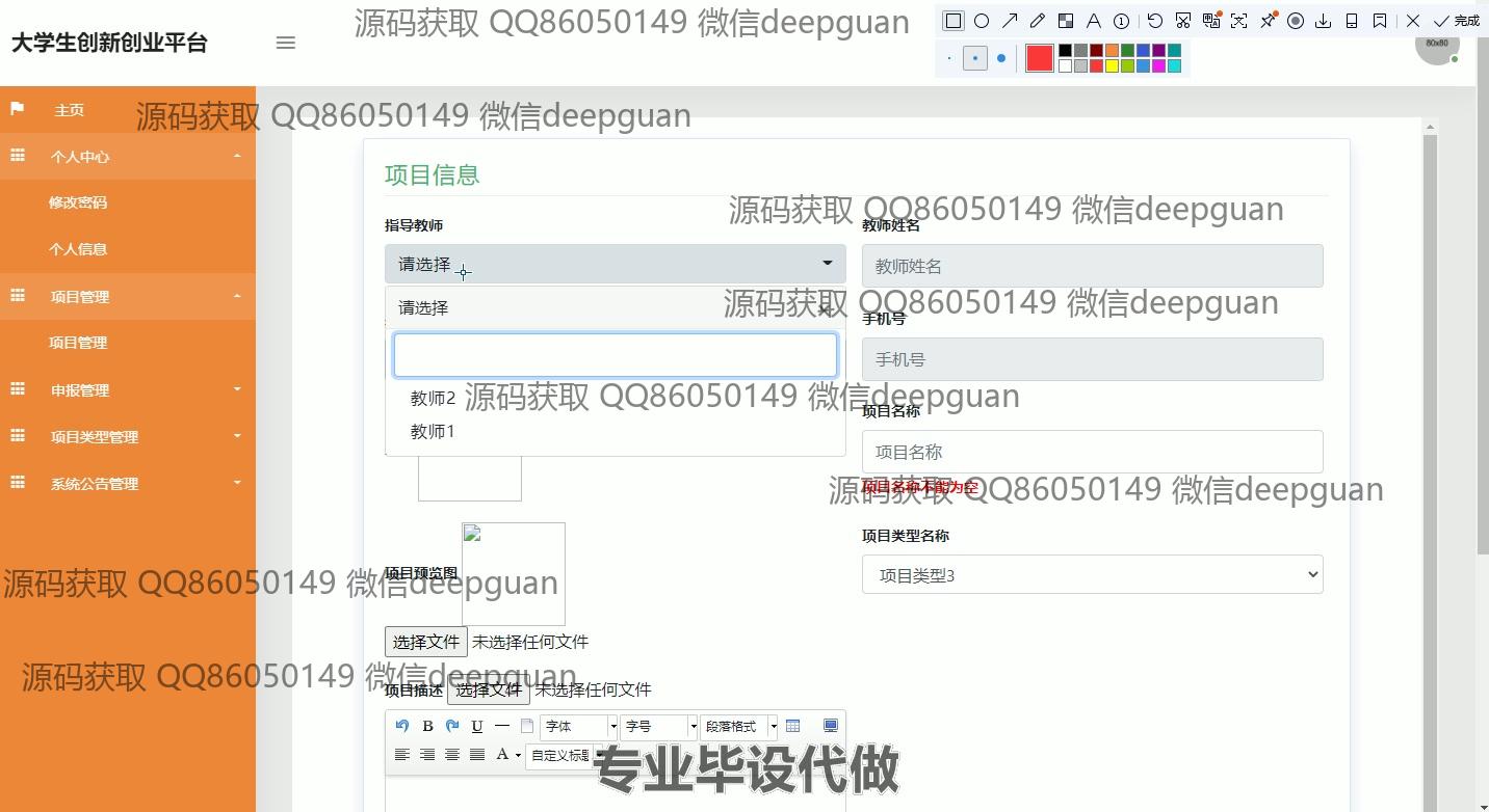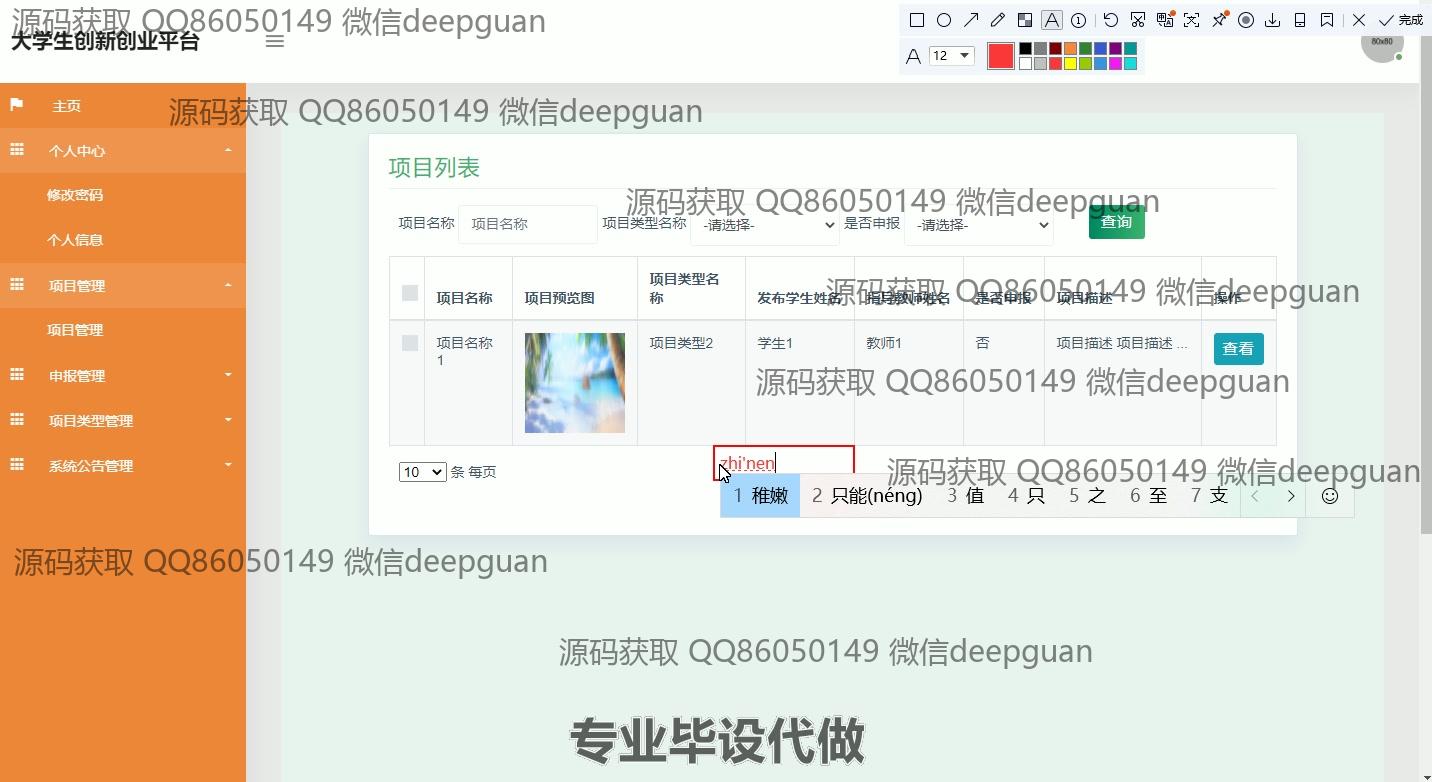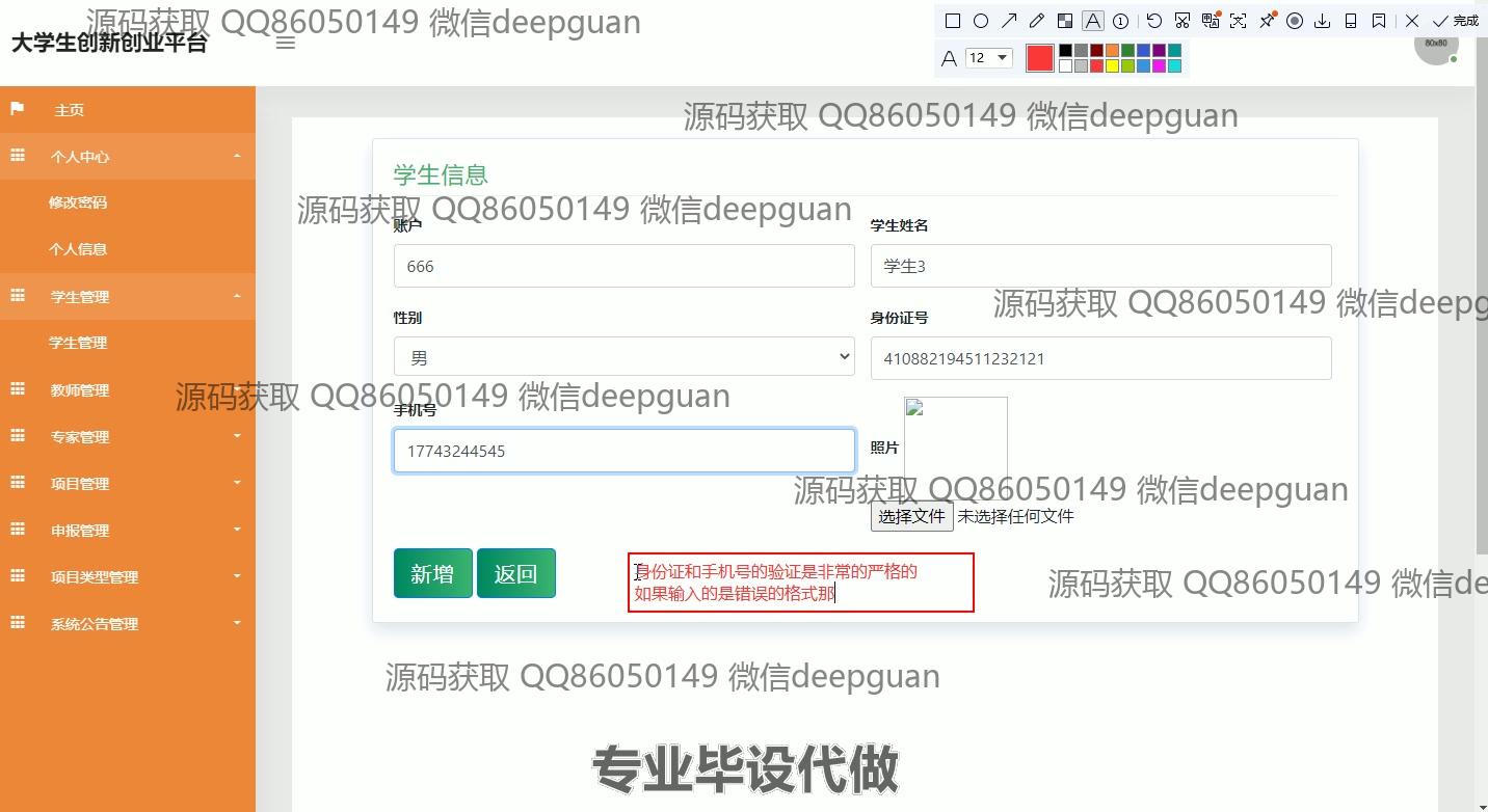 4 | 大学生创新创业平台:角色包括管理员、专家、教师和学生;提供项目管理、用户信息管理、密码修改、项目申请审批、公告发布等功能。界面简洁易用,提升管理效率。 --计算机毕业设计源码;毕设源码;java毕业设计源码