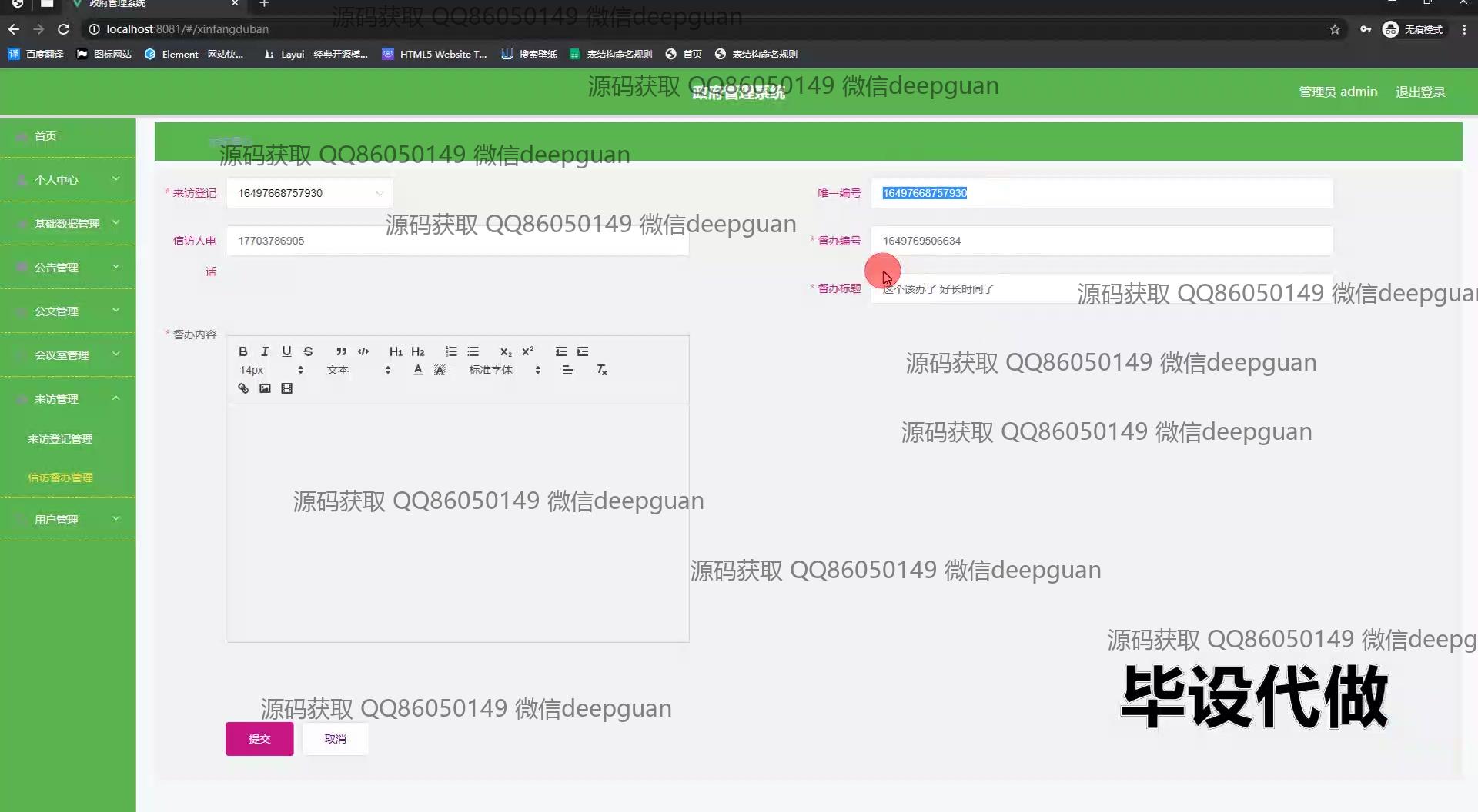 4 | 基于Spring Boot开发的政府管理系统:角色分为用户和管理员,涵盖单位管理、公文管理、留言管理、会议预约、信访登记等功能,以提升政府事务电子化管理效率。 --计算机毕业设计源码;毕设源码;java毕业设计源码