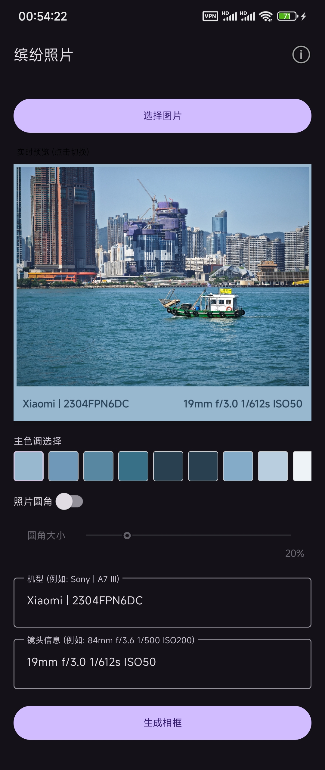 3 | 一款简单易用的照片相框生成工具,能够为您的照片添加美观的彩色相框,并展示相机和拍摄信息。
