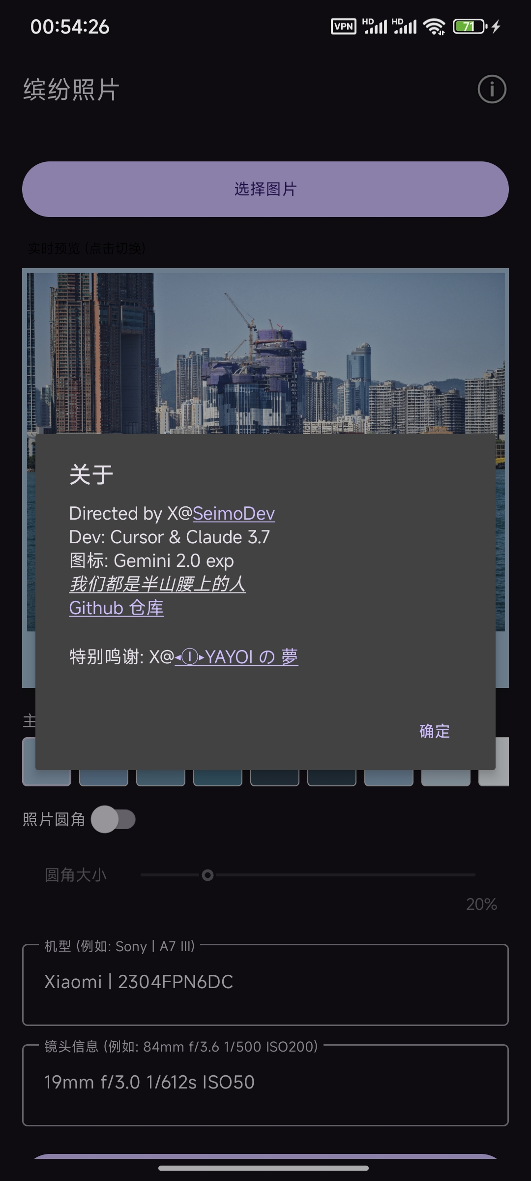 10 | - **EXIF信息读取**: 自动识别照片中的相机型号、镜头、光圈、快门速度等EXIF信息