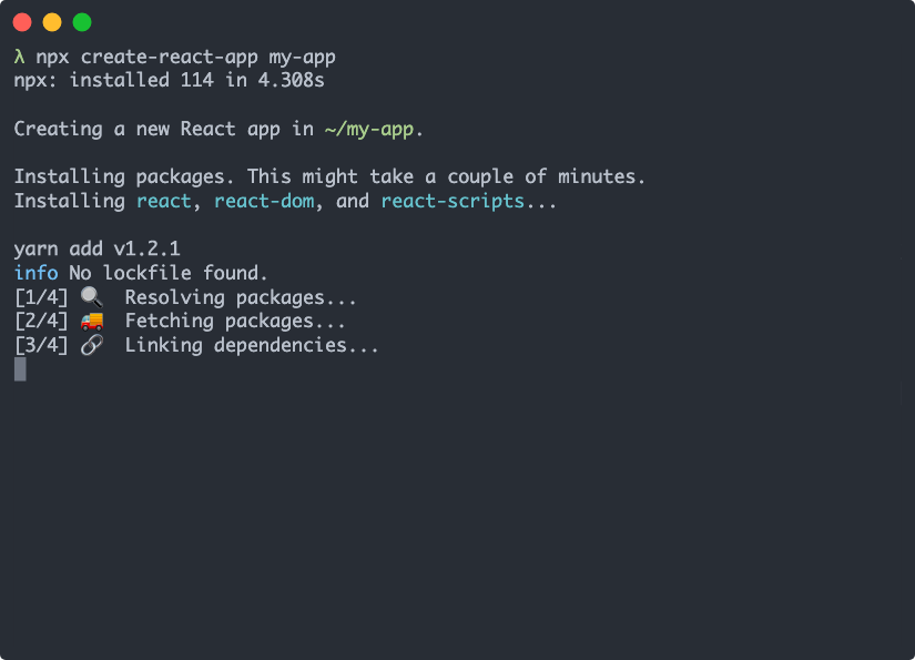 257 | 到这里,我们终于需要通过命令行来安装和使用 CRA,来构建我们的第三个“Hello World”App。