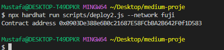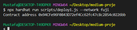 221 | 222 |npx hardhat run scripts/deploy1.js --network fuji komutu ile Token kontratımızı fuji ağına deploy ediyoruz.