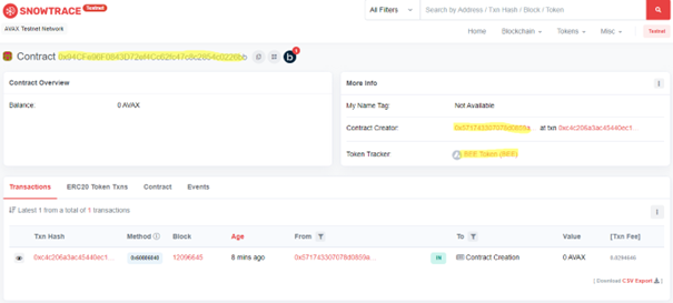 Artık bu 2 kontratımız fuji test ağında deploy edilmiş bir şekilde faaliyetine başlamıştır.( https://testnet.snowtrace.io/ ) adresinde işlemlerinizin kontrollerini gerçekleştirebilirsiniz. Aşağıda gördüğünüz üzere Metamaskımız da aktif olan cüzdanımızın PRIVATE_KEY ile bu iki kontratı deploy etmiştik. Snowtrace den bu cüzdan adresinin doğruluğunu da kontrol etmiş olduk. Peki bu "Snowtrace" nedir ? 254 | 255 | ### Snowtrace Nedir? 256 |