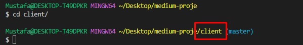 cd client kodu ile client dizinine geçiş yapıyoruz. Artık cüzdan bağlama ve kontrat ile etkileşime bu client adını verdiğimiz web projesi içerisinde yapacağız.