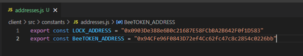 289 |Hatırlatma olarak biz Lock ve BeeToken kontratlarımızı deploy etmiştik. Yani bu kontratlar Blockchain üzerinde hali hazırda çalışmaktadır. Yapmamız gerek ethers kütüphanesi ile bu kontratların projemizde bir instance ‘larını oluşturarak iletişime geçmek kaldı.